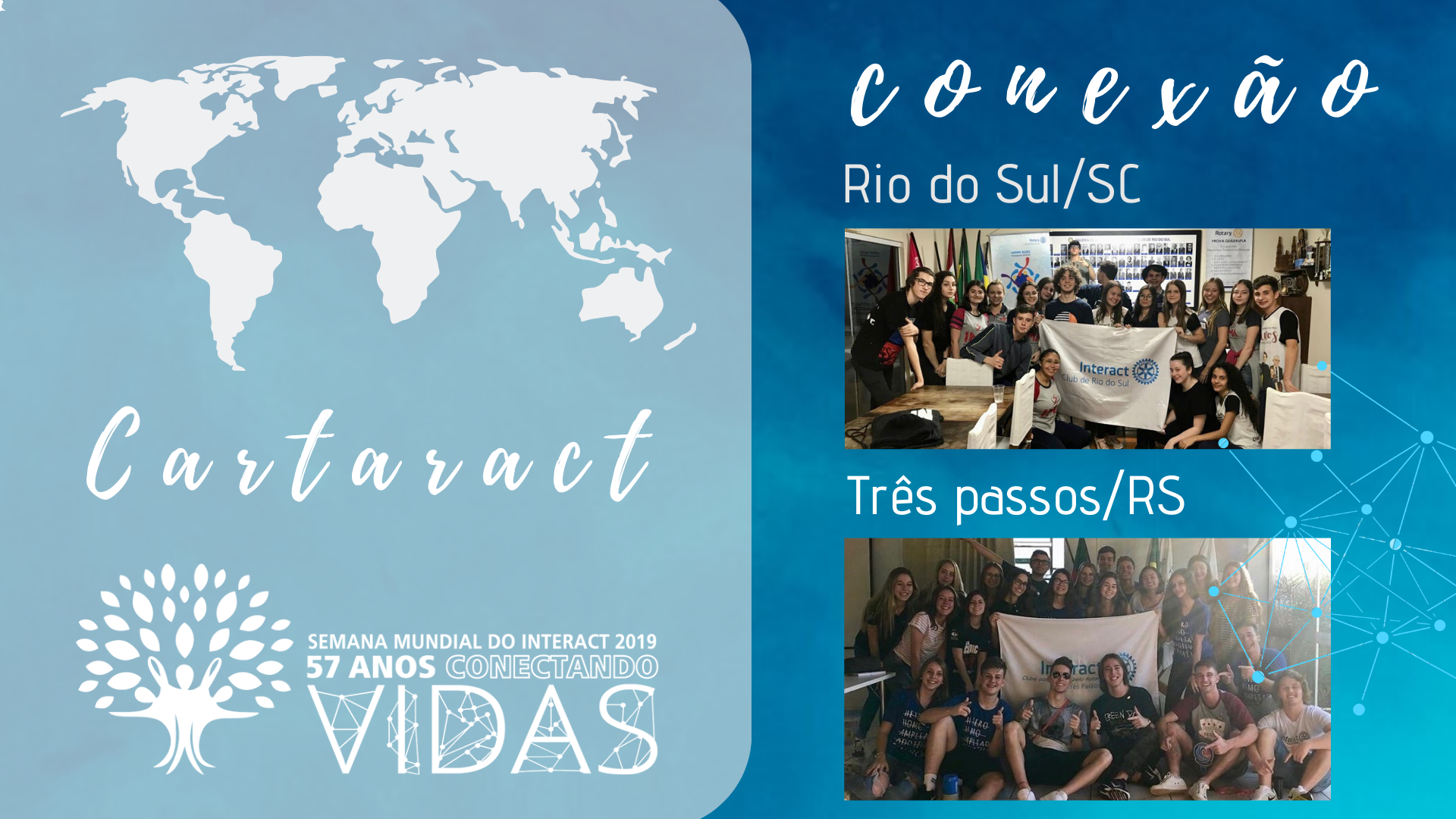 A proposta do terceiro dia da SMI é: conectando culturas. Para isso, o Interact Club de Três Passos nos convidou para o projeto “Cartaract” que consiste em uma troca de caixas contendo comidas típicas, objetos e pontos turísticos de cada região, além de uma cartinha contando um pouco sobre cada clube.